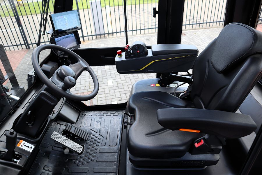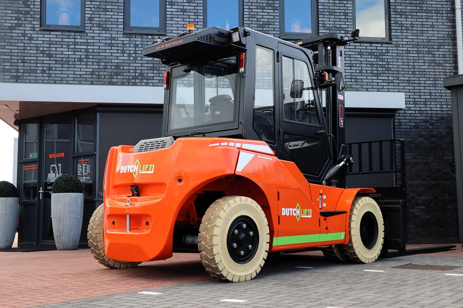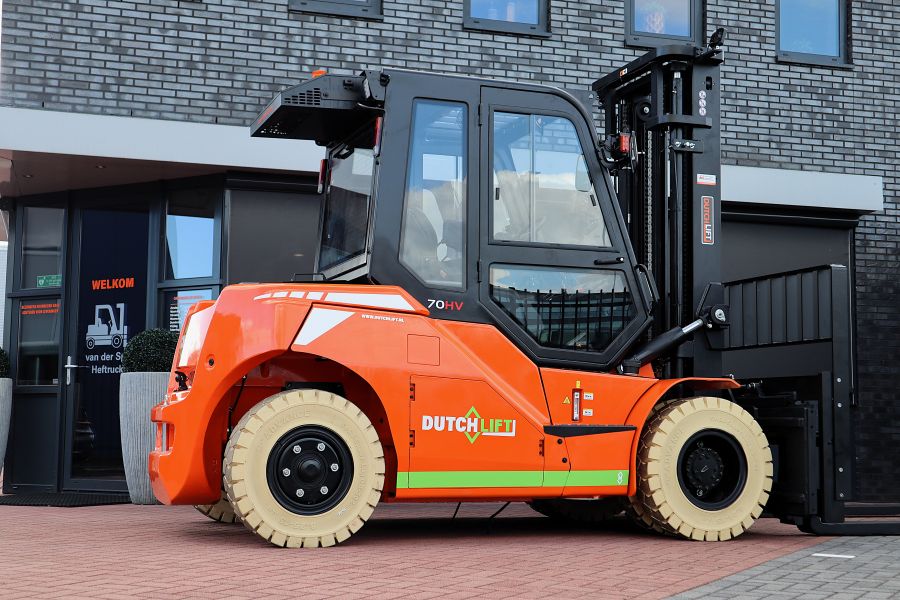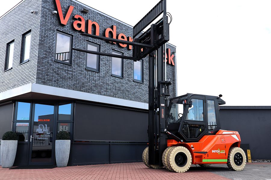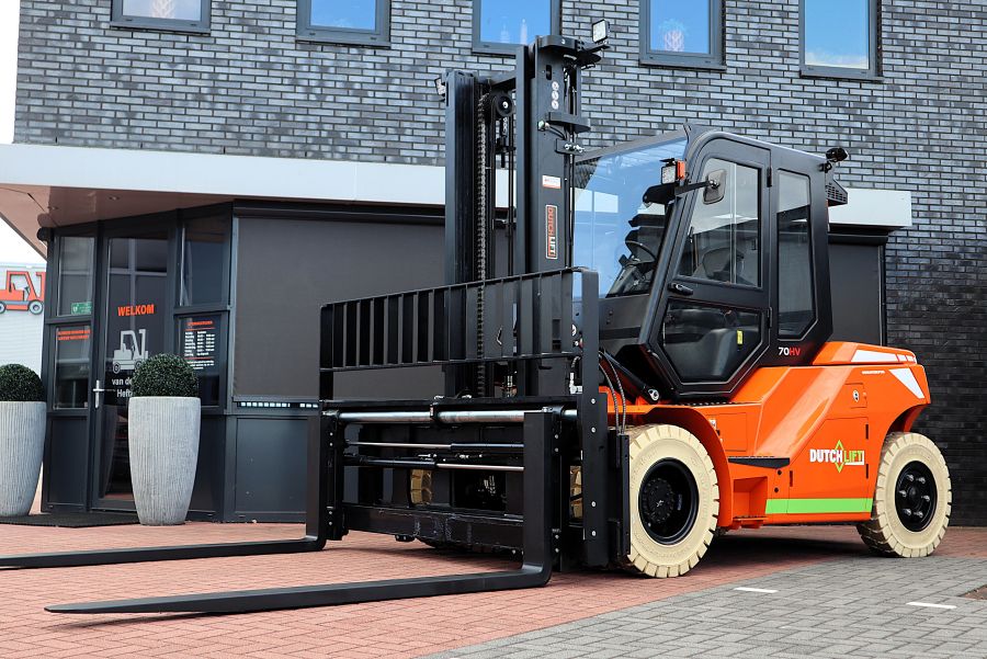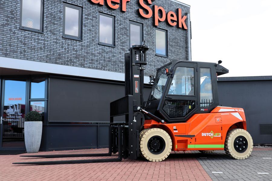 De Dutchlift DFL 703 HV is een nieuwe elektrische vorkheftruck, direct uit voorraad leverbaar. Deze heftruck is ontworpen voor het tillen en verplaatsen van lasten tot 7000 kg en heeft een maximale hefhoogte tot 6 meter. De standaard hefmast van 4 meter is voorzien van een sideshift en een vorkversteller, waardoor nauwkeurige en flexibele hantering van ladingen mogelijk is. Het voordeel van vorkversteller is dat de gebruikers niet hoeven af te stappen om de lepels in breedte te verstellen, wat een enorm gebruikersgemak oplevert!