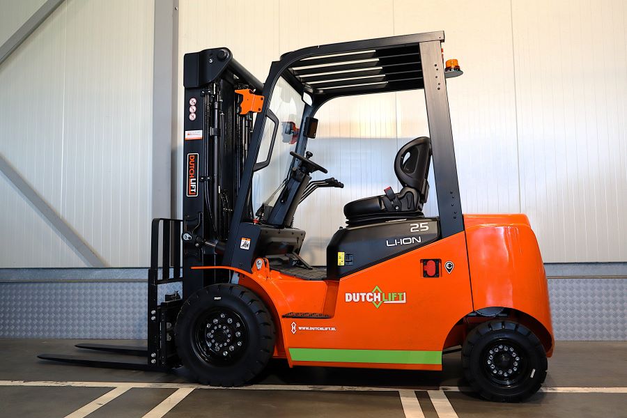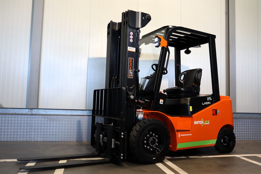 De Dutchlift DL-252 is een nieuwe elektrische vorkheftruck, direct uit voorraad leverbaar. Deze heftruck is ontworpen voor het tillen en verplaatsen van lasten tot 2500 kg en heeft een maximale hefhoogte tot 6 meter. De standaard Triplex Freelift 480 cm mast is voorzien van een sideshift en een vorkversteller, waardoor nauwkeurige en flexibele hantering van ladingen mogelijk is. Het voordeel van vorkversteller is dat de gebruikers niet hoeven af te stappen om de lepels in breedte te verstellen, wat een enorm gebruikersgemak oplevert!
